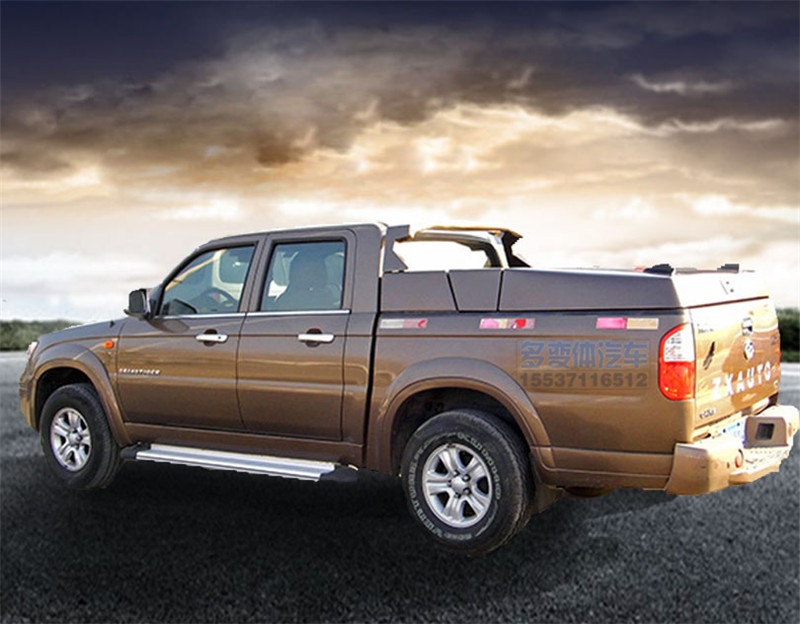 中興威虎皮卡改裝鯊魚王多體變汽車智能皮卡后箱蓋,采用金屬冷板材質,日產電泳工藝防銹、防塵防水、防異響,聯鎖工藝,一體鎖止,防盜保證安全,后蓋支持原車鑰匙遙控開啟,其它后蓋沒有功能,六個變化動作,載貨空間更大,產品研發專利,全球銷售,海外出口。